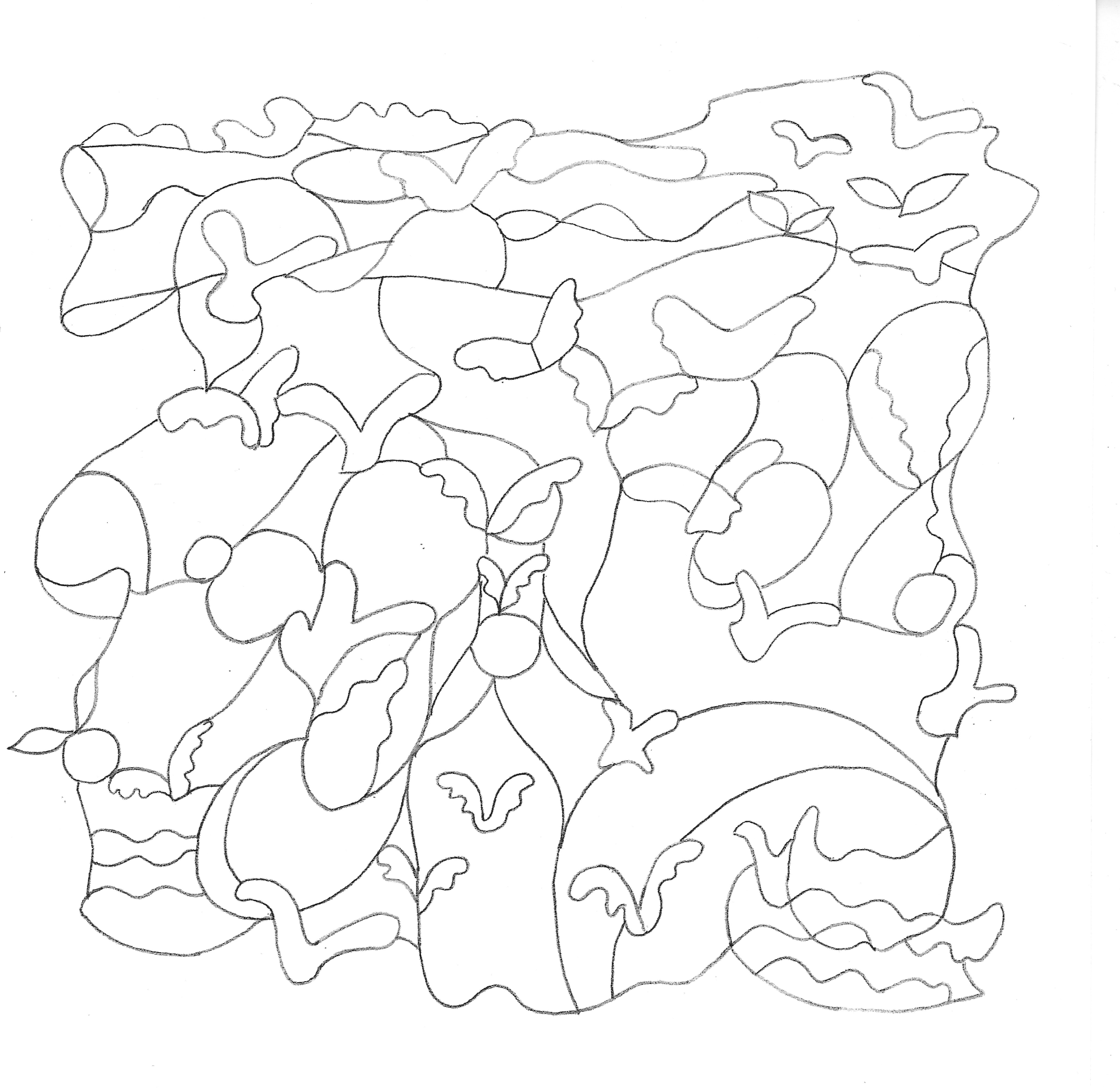 Below are the initial drawings for the La Juni installation, without the floating pieces in the spaces between the paintings.